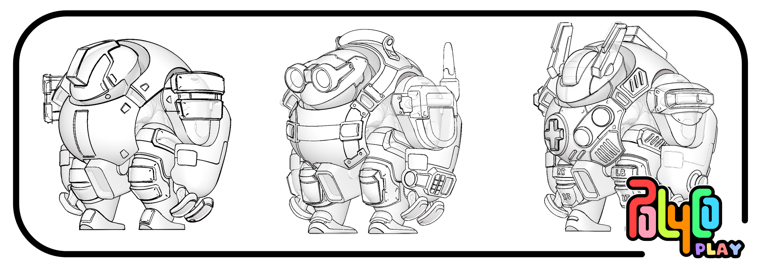 By establishing a flexible base structure, the mech can evolve through interchangeable parts, expanding forms, and shifting proportions without breaking visual cohesion. This modular foundation allows each variation to feel distinct while remaining part of the same system.